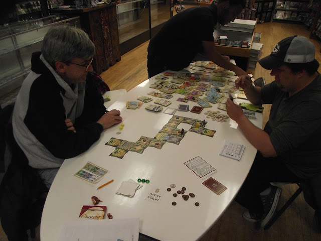 The End Game: The game ends after a certain number of rounds, which need to be tracked by checking off a mark on the score sheet every time a round is complete. This is a mechanic that I loathe. Any time rounds need to be tracked I find myself forgetting at some point in the game, then wondering how many rounds I missed tracking. This is especially so when the tracking of rounds is external to the gameplay. There are quite a few games that do this, and I always wish for a better solution. I'm not sure if there is one though. Maybe have a stack of 10 carrot tokens on Founder's Hill and every time someone cycles back to Founder's Hill they take a token? When all the tokens are gone the game ends? That might work, but it might also encourage players to just move along the shortest paths to rush the game to its end. So I'm not sure if there's a solution, other than just avoid having me track the rounds... Some people might also be against the game not having any tiebreaker rules, but as I mentioned before, that's something easily house ruled if it concerns you.